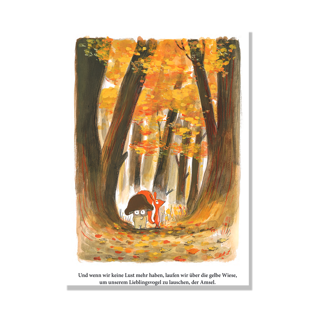 Das Eichhörnchen und sein bester Freund Pok lieben es, der Amsel beim Singen zuzuhören. Aber eines Tages liegt der Vogel auf dem Weg und bewegt sich nicht. Ob er schläft? Zusammen mit Günther überlegen sie, was passiert ist. Irgendwann wird ihnen klar, dass die Amsel tot ist. Die Freunde machen das, was man machen muss, wenn jemand tot ist. Aber was muss man eigentlich machen? Auf jeden Fall braucht die Amsel weiter Schutz. Also bauen die drei einen großen Blätterhaufen mit einem Zapfen ganz oben. Aber reicht das? Nach und nach finden die Freunde ihren ganz eigenen Weg, den Tod des Lieblingsvogels zu bewältigen.Tallec erzählt mit Respekt, Witz und Leichtigkeit - realistisch und ermutigend.