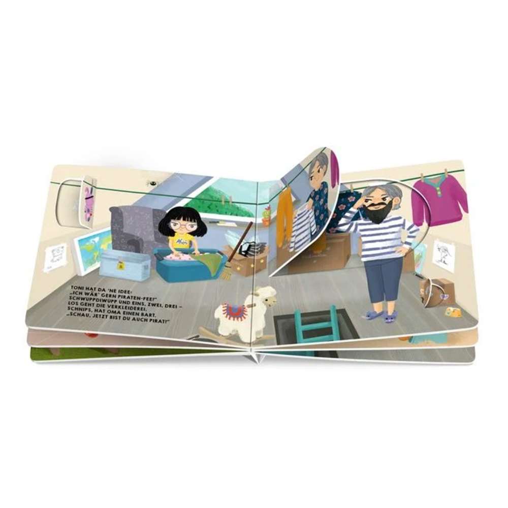 - Interaktives Mitmachbuch: Stabile Verwandlungsklappen lassen Kinder in verschiedene Kostüme schlüpfen und fördern dabei spielerisch die Motorik.
