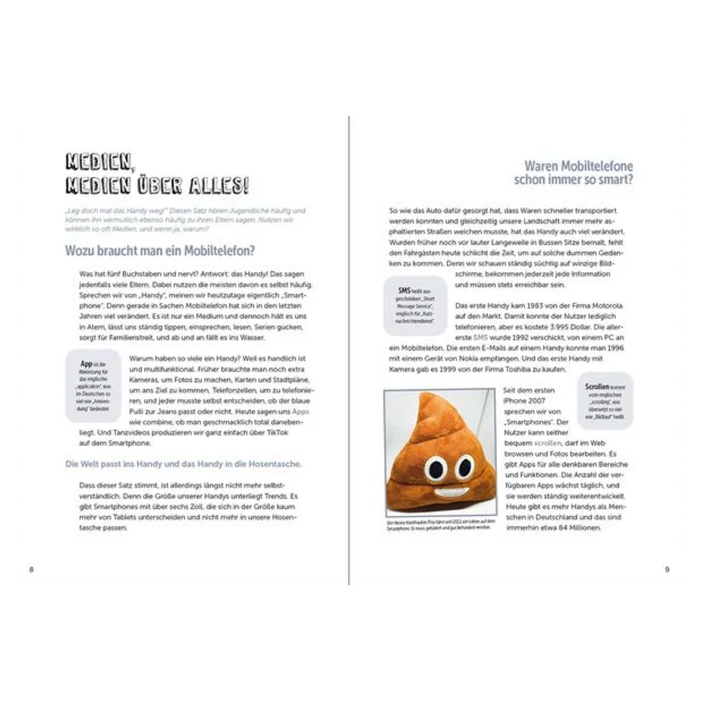 Medienkompetenz verständlich erklärt: Was sind eigentlich Medien? Was machen Influencer? Wo lauern im Internet Gefahren? Was hat es mit Verschwörungstheorien auf sich? Wie funktionieren Datenschutz und Urheberrecht? Und wie kann ich mich vor Cybermobbing schützen?