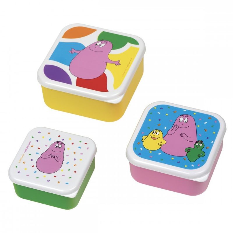 Ein praktisches Set von drei Lunchboxen im „Barbapapa“-Design – ideal für unterwegs, ob für einen Snack, ein leichtes Mittagessen oder das Frühstück. Die Boxen lassen sich platzsparend ineinander stappeln.