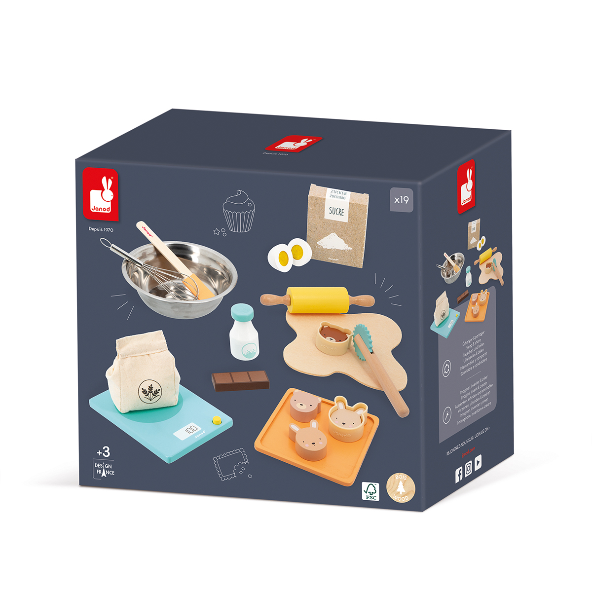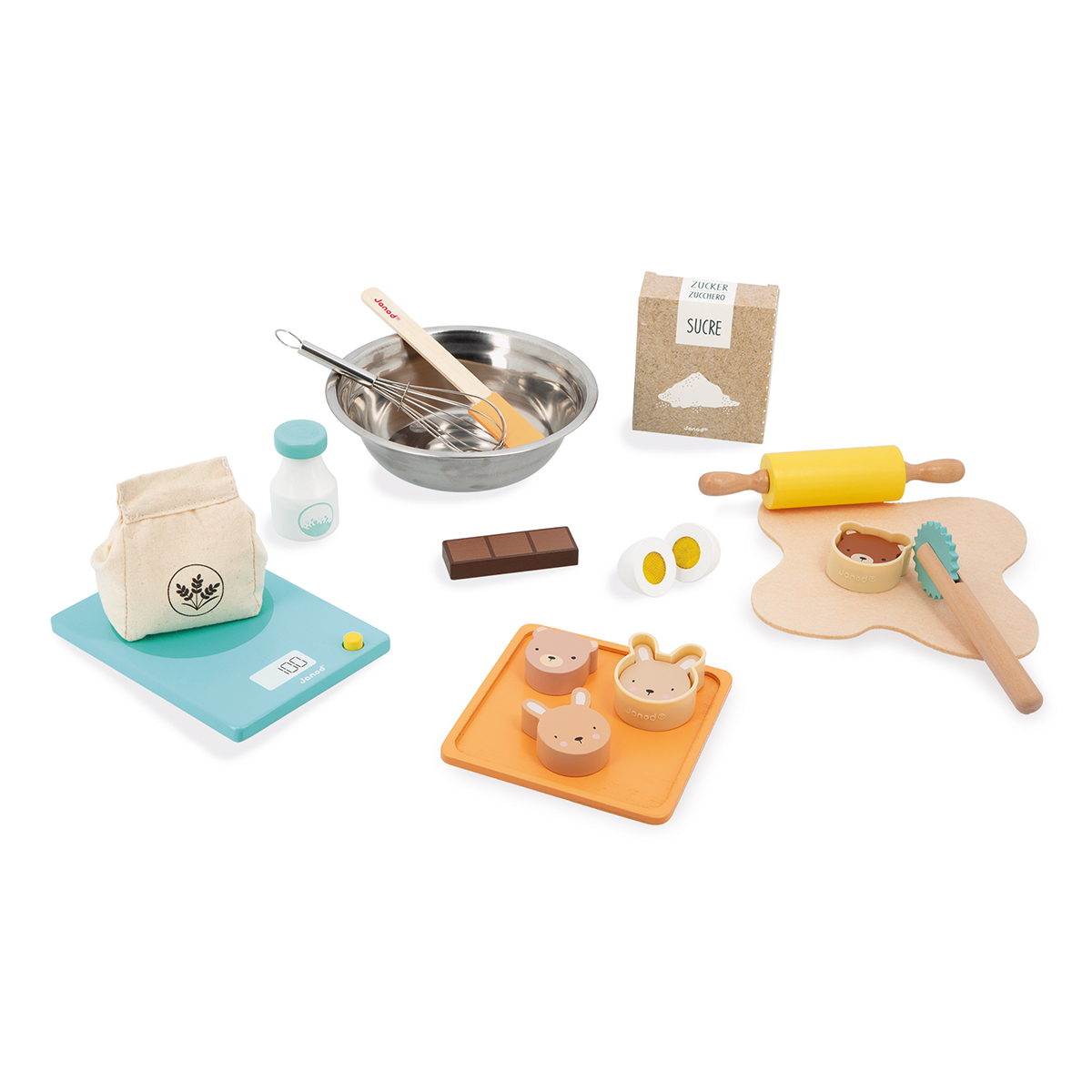 Es ist Back-Zeit! Mit diesem Set werden Kinder zu kleinen Bäcker*innen. Mit Mehl, Zucker, Milch Eier und Schockolade können sie Kekse backen. Mit 19 Accessoires - alles, was man braucht, um wie die Grossen zu backen. Dieses Set von Janod ist ideal, um die Fantasie zu fördern.